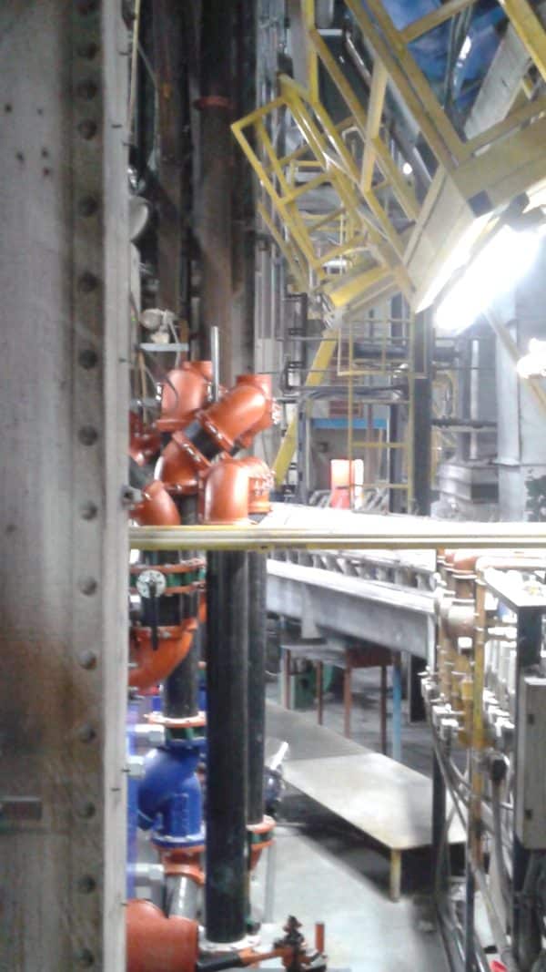 Projet adjacent à une ligne de coulée de métal en fusion en production. Tuyauterie de 6″ pour un débit d’environ 900 gallons (US) par minute